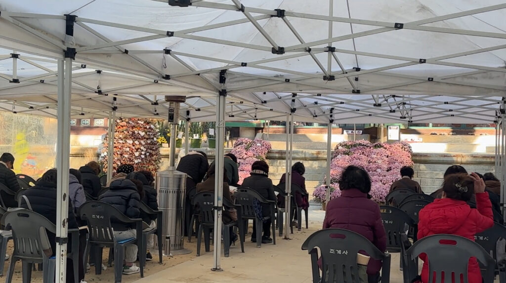 お経がずーっと読まれていて、信心深い方々が熱心にお祈りをされていました。