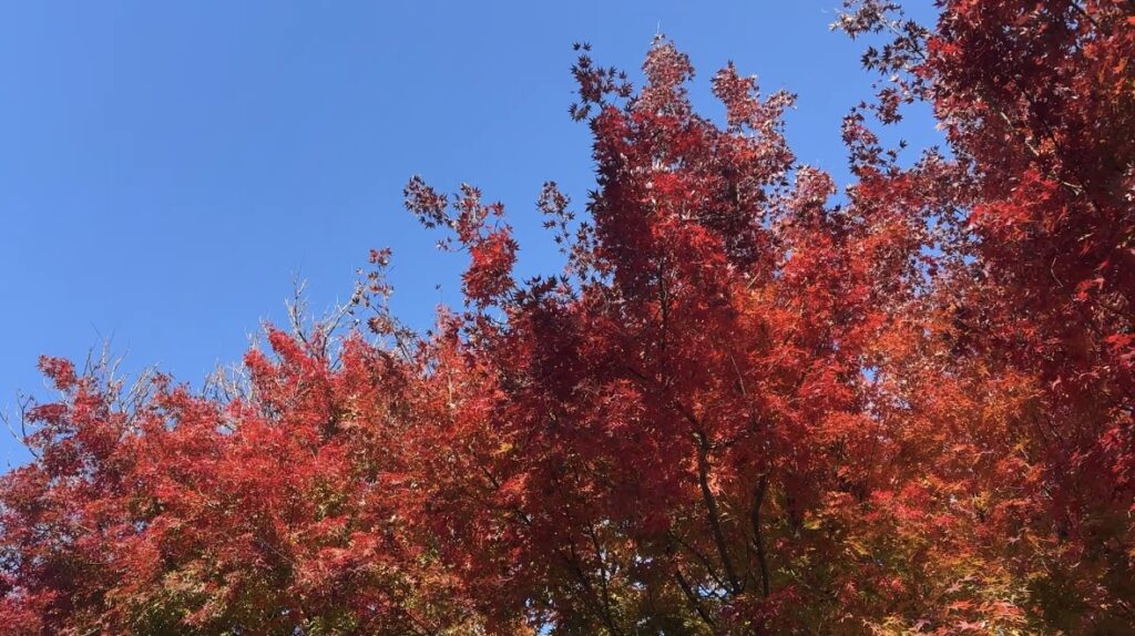 とてもよく晴れて、この日も何かの日だったのか、マイクでずっとお経が流れていました。